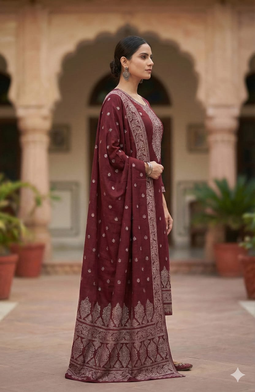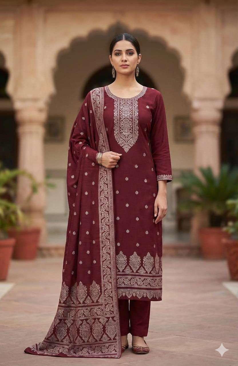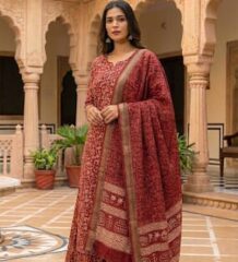 Women’s Cotton Linen Printed Suit Set with Dupatta – Available in Two Colours