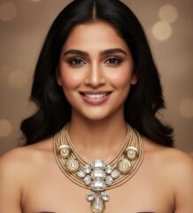 A refreshing blend of tradition and elegance, this handcrafted aqua jute necklace features a stunning cluster of white beads at its centre. The multi-strand design adds volume and grace, making it the perfect accessory for summer events, festive gatherings, or elegant daytime looks.
