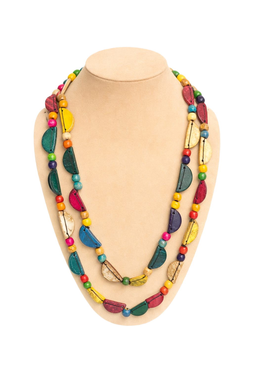 Stylish multicolor layered necklace with handmade beads. Perfect for casual wear, boho fashion, and Indo-western outfits.